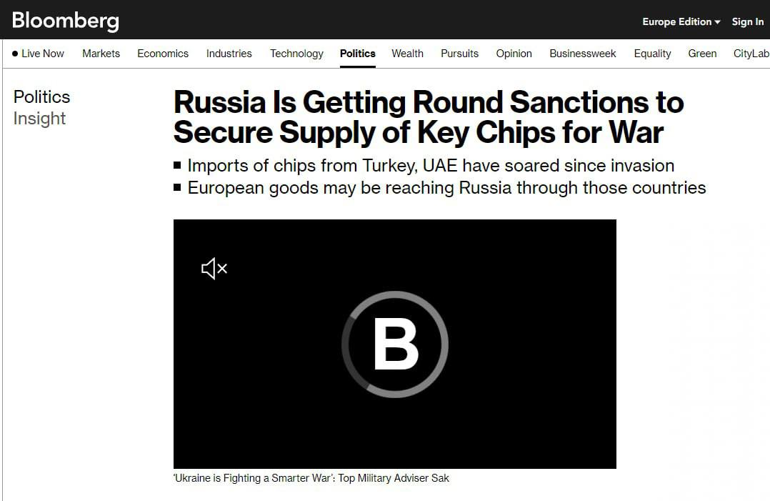 Данные, полученные Bloomberg, показывают, что Турция, Сербия, ОАЭ и полдюжины других стран Восточной Европы и Центральной Азии помогли России восполнить дефицит.