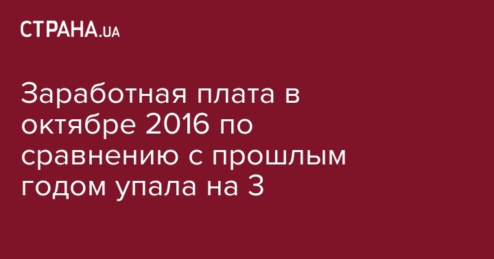 В Украине отмечено снижение зарплаты по сравнению с сентябрем 2016 года, она оказалась ниже показателя прошлого месяца этого года на 3%, говорится в сообщении Государственной службы статистики Украины.