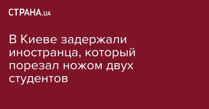 Полиция Киева задержала иностранного студента, который ранил ножом двух других иностранных студентов - парня и девушку. Все они учатся в одном учебном заведении. Об этом сообщает ГУ Нацполиции Киева.