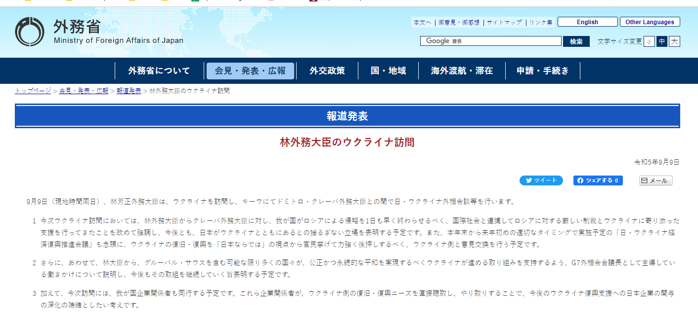 Этот визит в Украину станет первым для главы японского внешнеполитического ведомства с момента начала войны в феврале 2022 года.