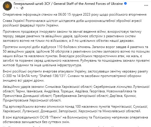 Война в Украине идет уже 660-й день. Мы следим за последними новостями и ключевыми событиями 15 декабря 2023 года в обновляемом онлайне.