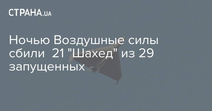 Сегодня ночью удалось сбить 21 "Шахид" из 29 запущенных во время очередной атаки РФ.