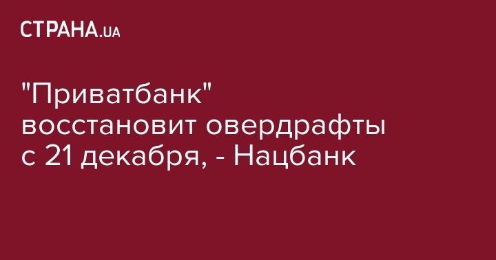 "Приватбанк" восстановит овердрафты с 21 декабря, - Нацбанк