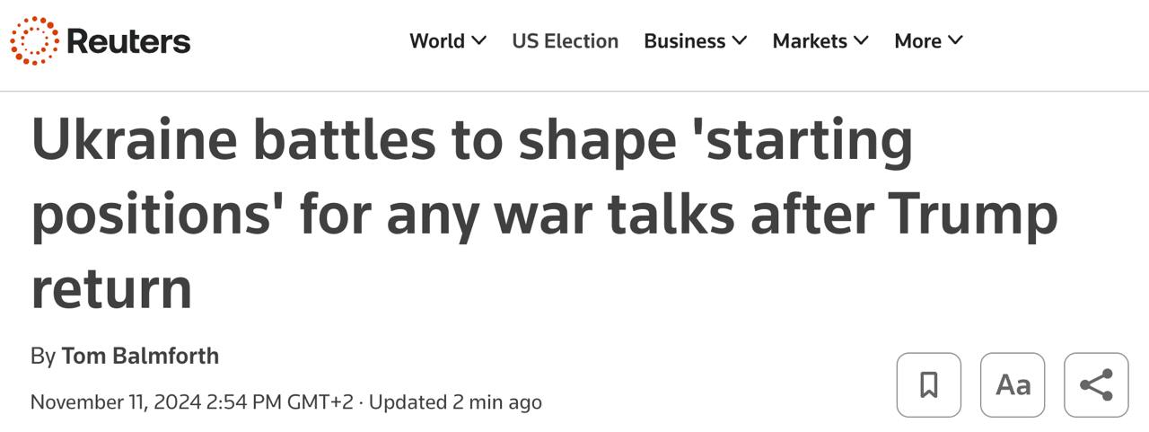 Как сказано в статье издания, таким образом чиновник "сигнализировал о том, как возвращение Дональда Трампа в Белый дом сосредотачивает умы в Киеве на возможном завершении войны".