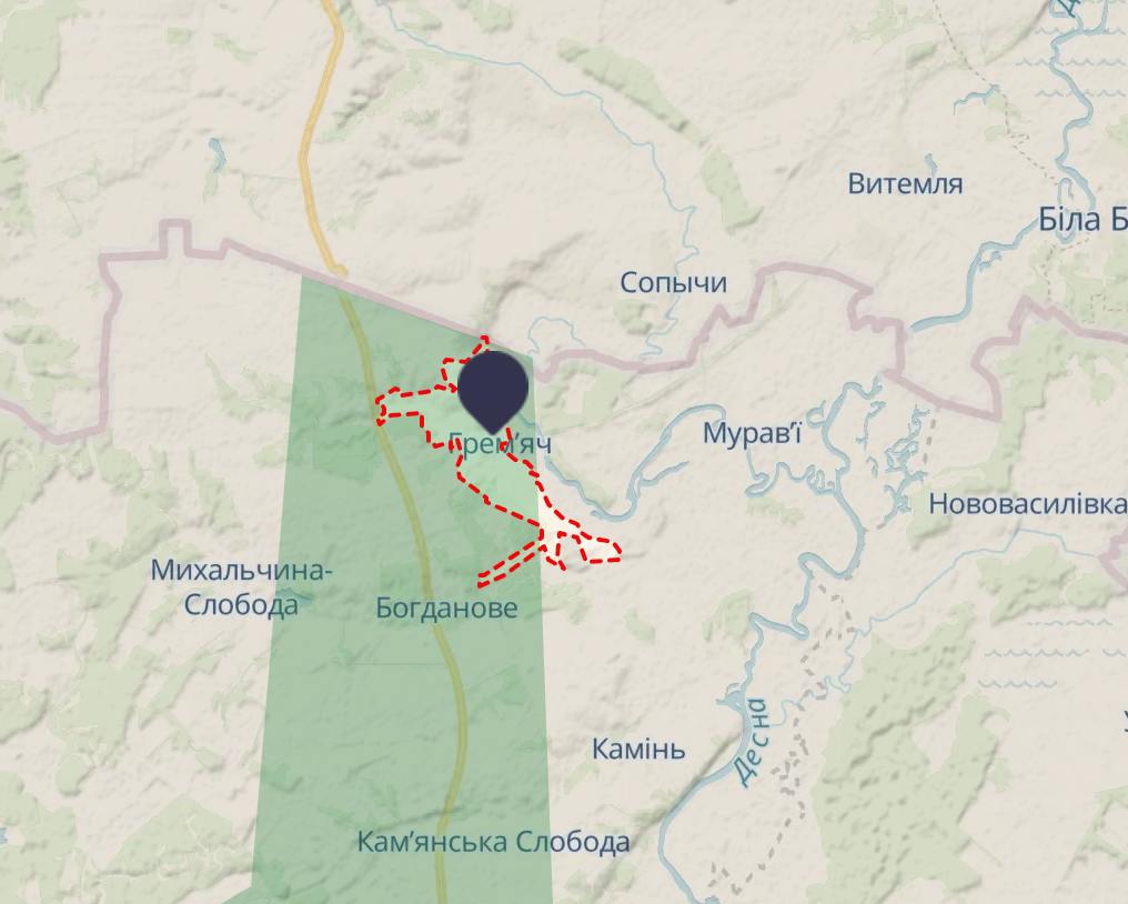 13:20 Российская ДРГ перешла границу и зашла в село Гремяч Черниговской области, установив флаг на мосту через реку Судость.