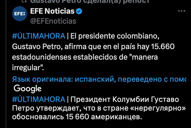 Тем временем президент Колумбии Густаво Петро поручил "разобраться" с 15 тысячами американцев, которые нелегально проживают в латиноамериканской стране.