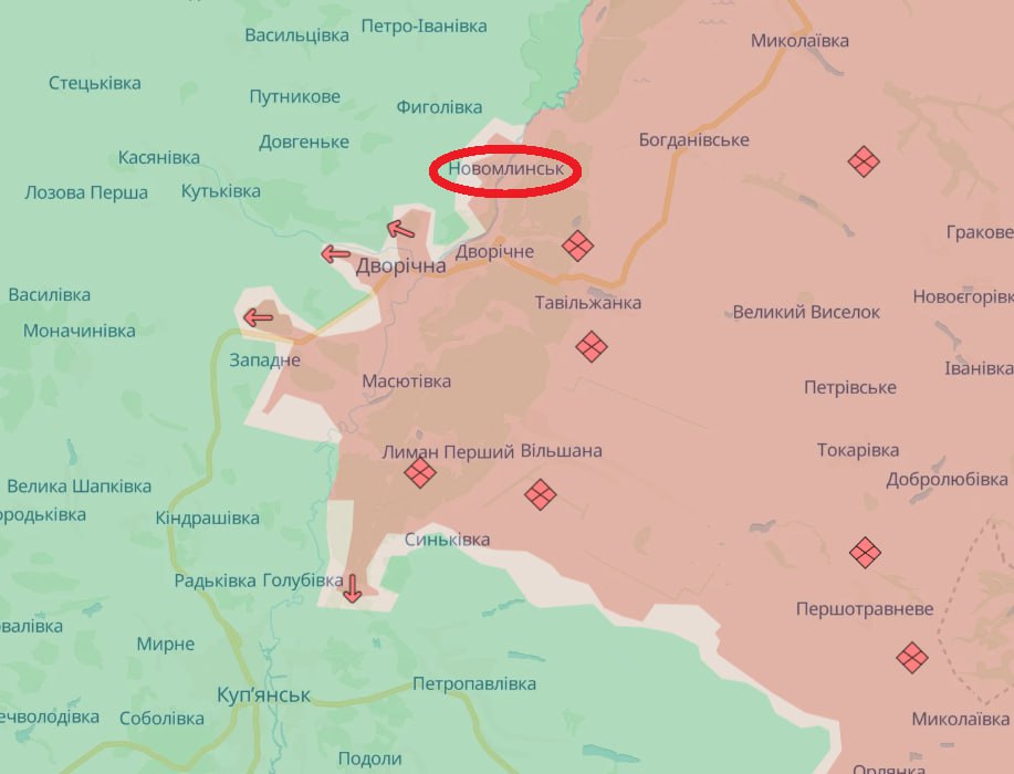 23:15 Россияне захватили Новомлынск на Купянском направлении, сообщает Deep State.