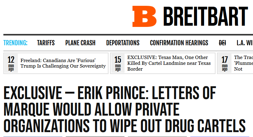 По мнению основателя ЧВК, это помогло бы остановить поток наркотиков и торговли людьми через границу США. Он также отметил, что картели делают огромные деньги, которые позволяют им покупать очень хорошую технику, высококлассных специалистов и современное оружие.