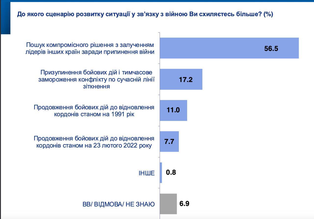 Кроме того, согласно опросу, более половины опрошенных украинцев поддерживают заключение компромиссного мира.