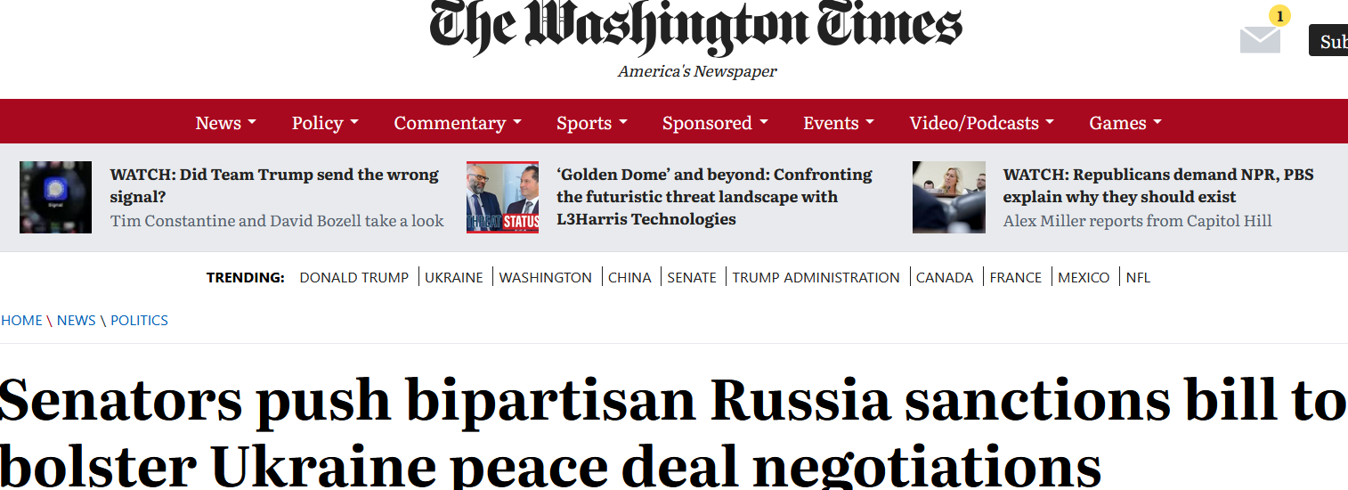 В Соединенных Штатах 25 сенаторов-республиканцев и 24 сенатора-демократа внесли законопроект о новых американских санкциях против России.