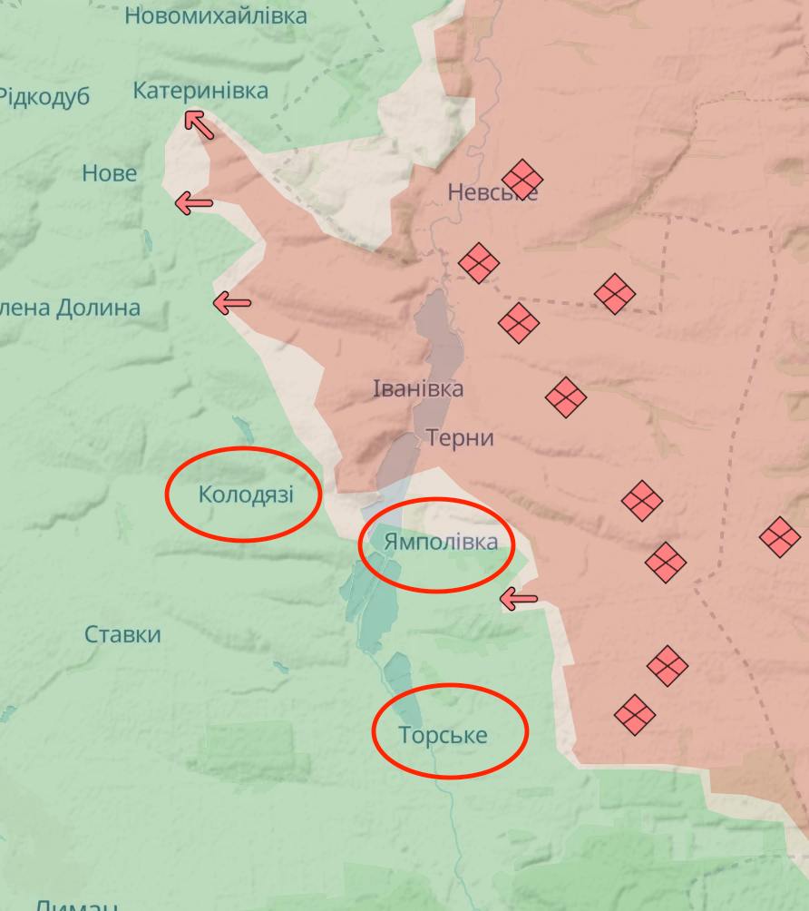 Ситуация на Лиманском направлении становится "все хуже", россияне уже полностью захватили Ямполовку, пишет украинский военный Бунятов. По его словам, теперь россияне пытаются прорваться в Торское, что южнее, и двигаются в направлении Колодезей, что западнее.