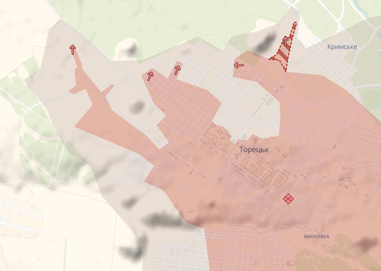 Также РФ, судя по карте DP, продвинулась в Торецке.