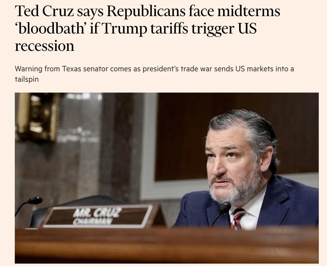 Издание отмечает, что Круз обычно поддерживает Трампа, и его слова "стали самым резким предупреждением от члена президентской партии" с момента объявления о "супер-пошлинах".