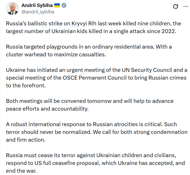 Глава МИД Украины Андрей Сибига. Фото: x.com/andrii_sybiha