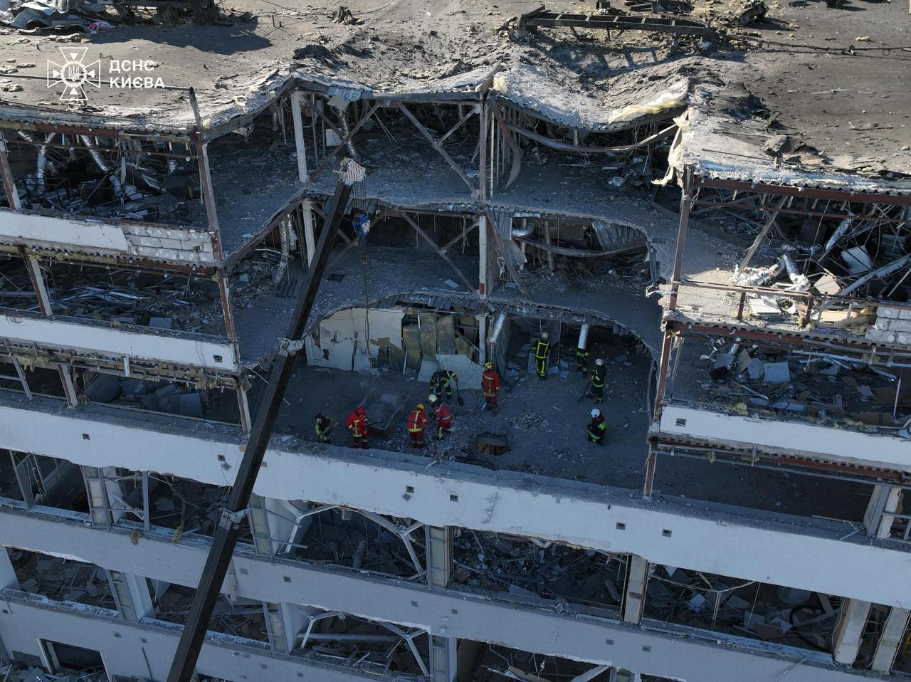 14.30 В Киеве третий день разбирают завалы на месте воскресного прилета по бизнес-центру, мебельному цеху и складу на Оболони, сообщает ГСЧС.
