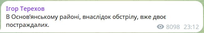 23.16 В Харькове двое пострадавших в результате прилетов, сообщил мэр Терехов.