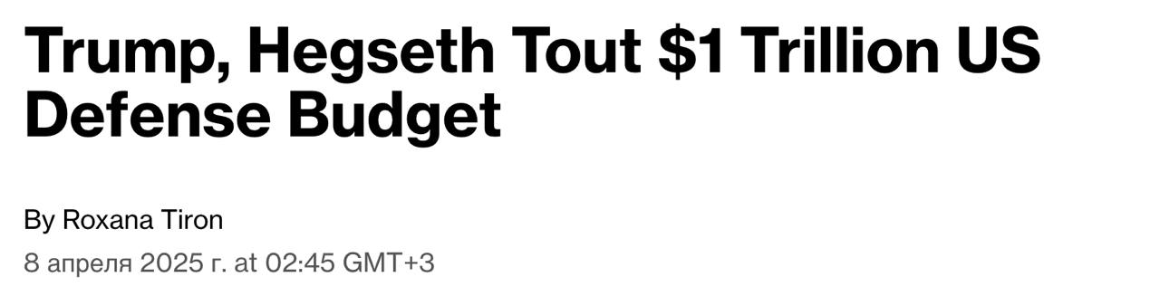 Несмотря на это, министр обороны США Пит Хегсет на своей странице в Х написал, что бюджет на триллион будет уже "скоро". Отметим, что в этом году у Пентагона бюджет 850 млрд долларов.