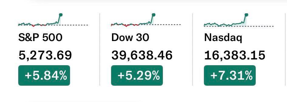 Между тем курс биткоина и фондовые индексы пошли в рост после заявления Трампа о паузе на 90 дней в введении тарифов после других стран.