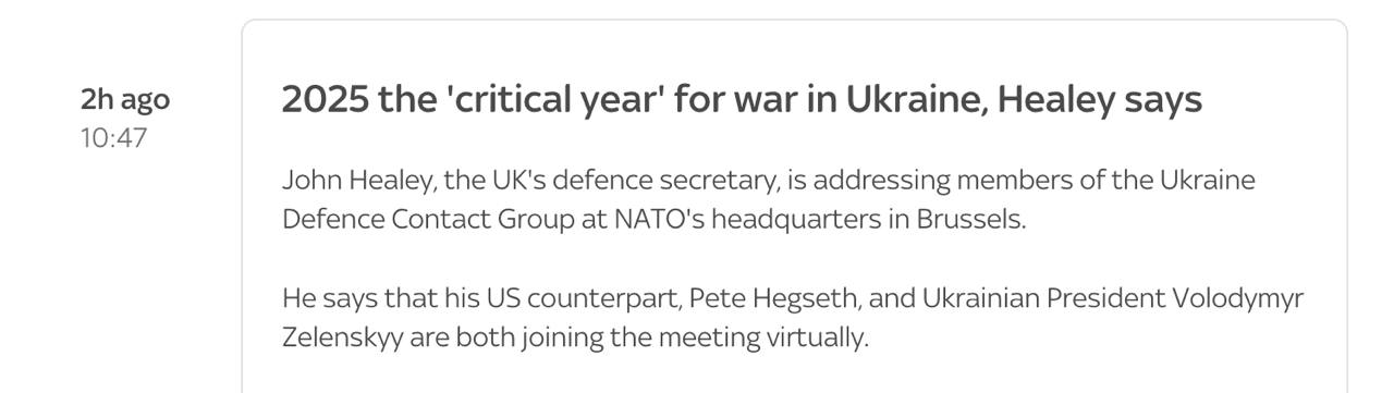 "2025 год - критический год для войны в Украине, и это критический момент", - заявил Хили, не уточняя, в чем критичность.