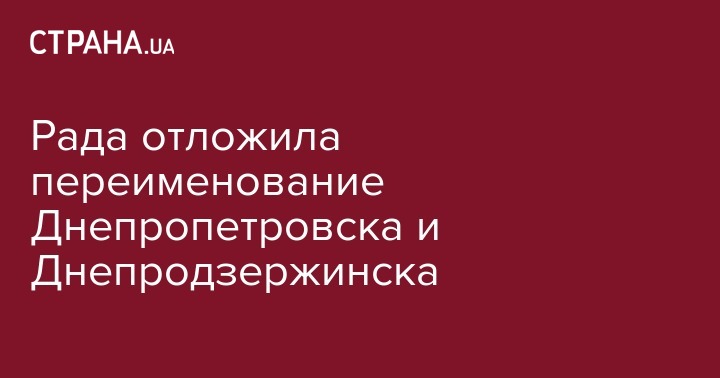 Верховная Рада Украины не включила города Днепропетровск и Днепродзержинск Днепропетровской области в перечень требующих переименования в рамках закона о декоммунизации, а поручила профильному комитету еще раз рассмотреть ряд спорных вопросов, в том числе переименование данных городов.