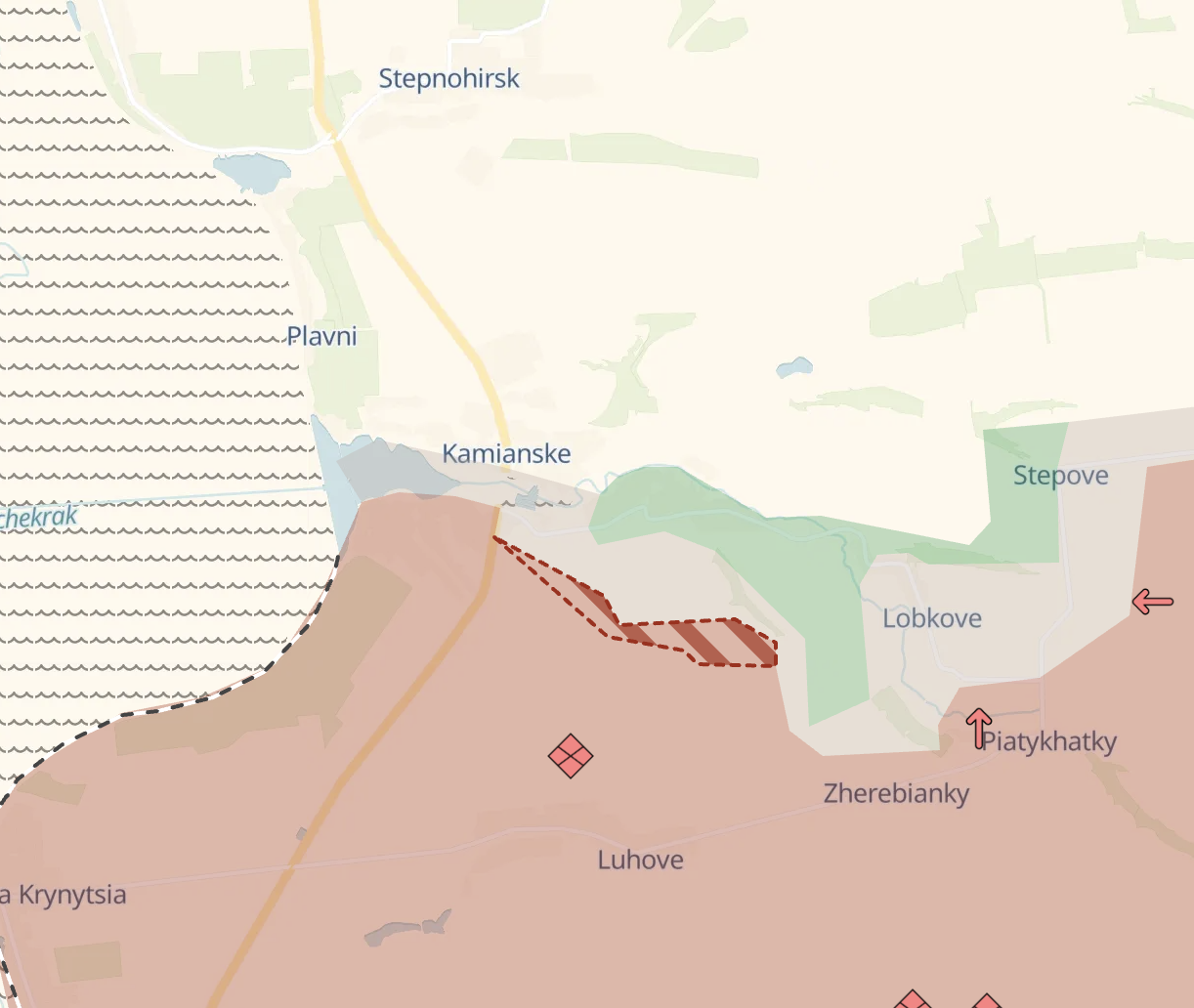 Армия РФ продвинулась в районе Каменского Запорожской области и в Днепроэнергии (юго-запад Донецкой области), согласно последней сводке украинского военного паблика Deep State.