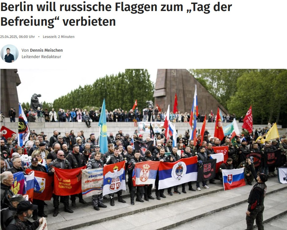 Напомним, в 2023 году Административный суд Берлина запретил демонстрацию на праздновании 9 мая российских флагов и символики.