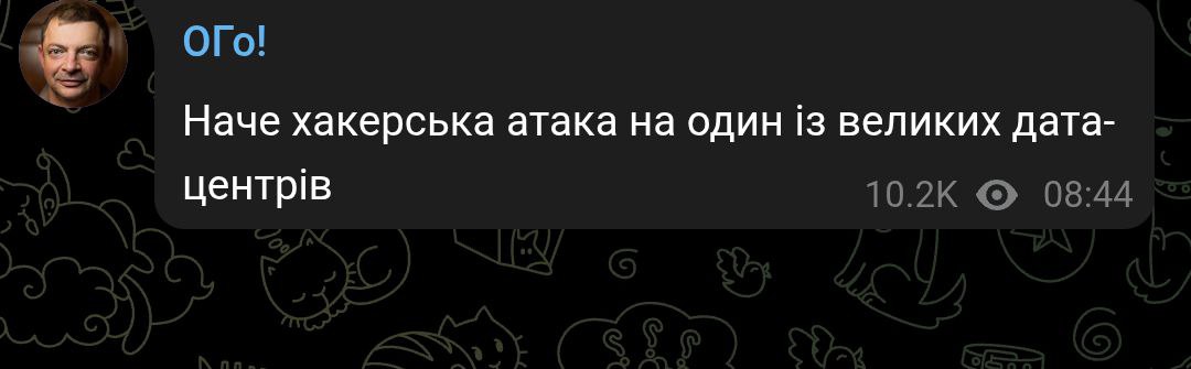 В свою очередь основатель "Монобанка" Олег Гороховский заявил, что сбой платёжных систем в Украине вызван хакерской атакой на один из крупных дата-центров.