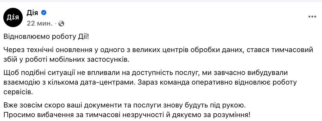 Сегодня утром перестала работать "Дия" и начался массовый сбой платёжных систем.