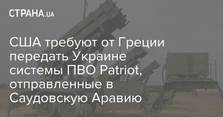 Соединенные Штаты требуют от Греции передать Украине системы ПВО Patriot, которые были направлены в Саудовскую Аравию.