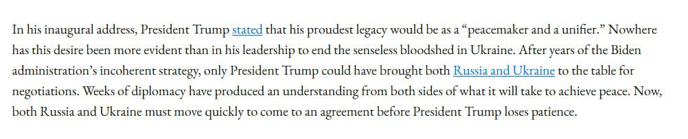 "Сейчас обе стороны должны двигаться быстро, прежде чем президент потеряет терпение", – отметил он, указывая на усилия США в Париже, Лондоне и Эр-Рияде.