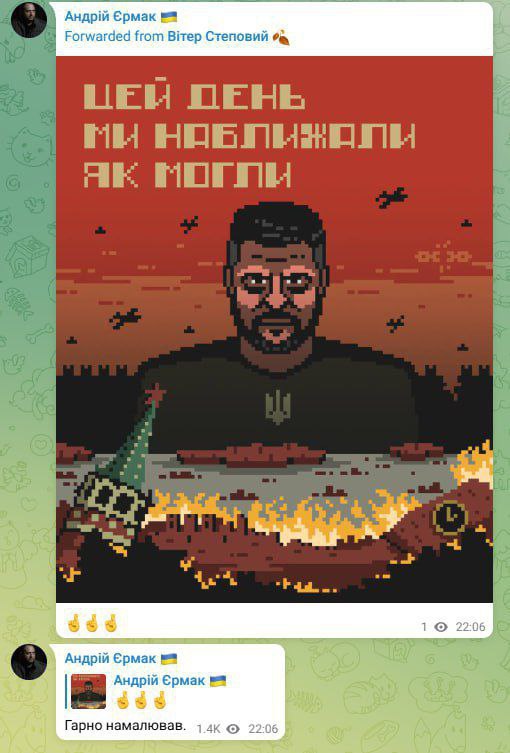 На выходных украинский президент усилил этот мессидж и заявил, что "не может гарантировать безопасность" гостям парада на Красной площади. А глава Офиса президента Ермак опубликовал картинку с изображением Зеленского, беспилотников и горящей Красной площади. "Этот день мы приближали, как могли", - гласит надпись (отрывок из советской песни "День Победы").
