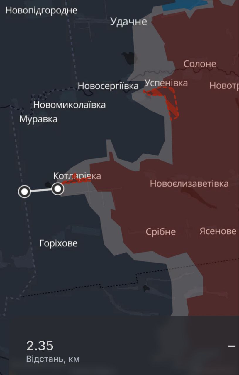 На участке фронта между Покровском и Курахово россияне существенно продвинулись к границе Днепропетровской области, к которой остается им 2,3 километра.