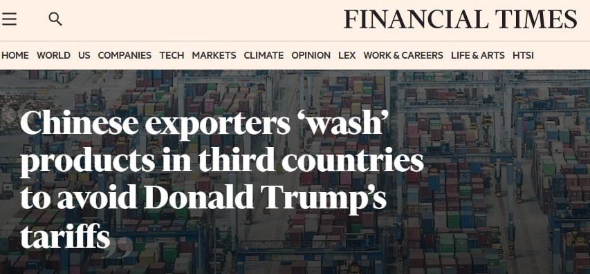 Китайские компании все чаще отправляют продукцию в третьи страны, чтобы скрыть ее истинное происхождение и избежать высоких тарифов, введенных американским президентом Дональдом Трампом.