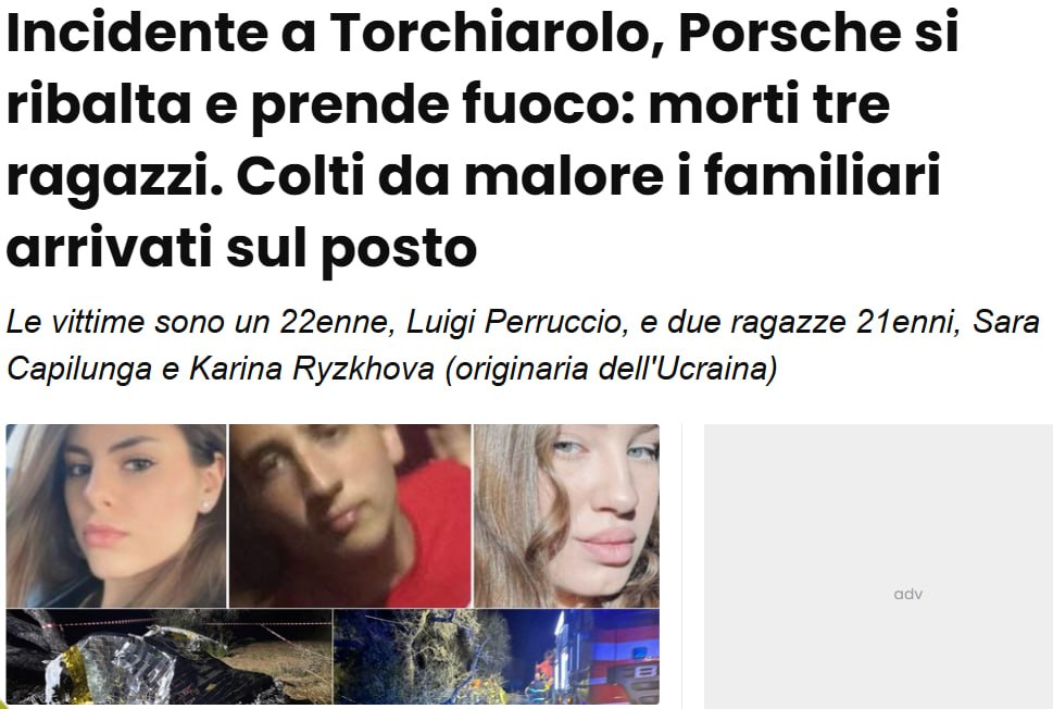 Карина, родившаяся в Украине, после начала войны переехала в Италию и жила в Торкьяроло, работая в местном баре. Вместе с ней погибли ее 22-летний жених Луиджи Перруччо и 21-летняя подруга Сара Капилунга.