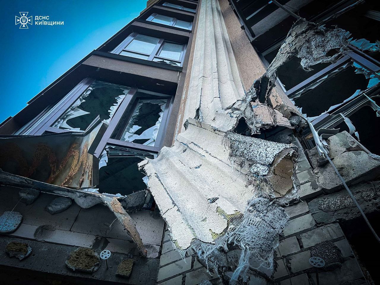 Пострадала многоэтажка в Шевченковском районе. На нее упали обломки сбитого беспилотника, сообщил Кличко.