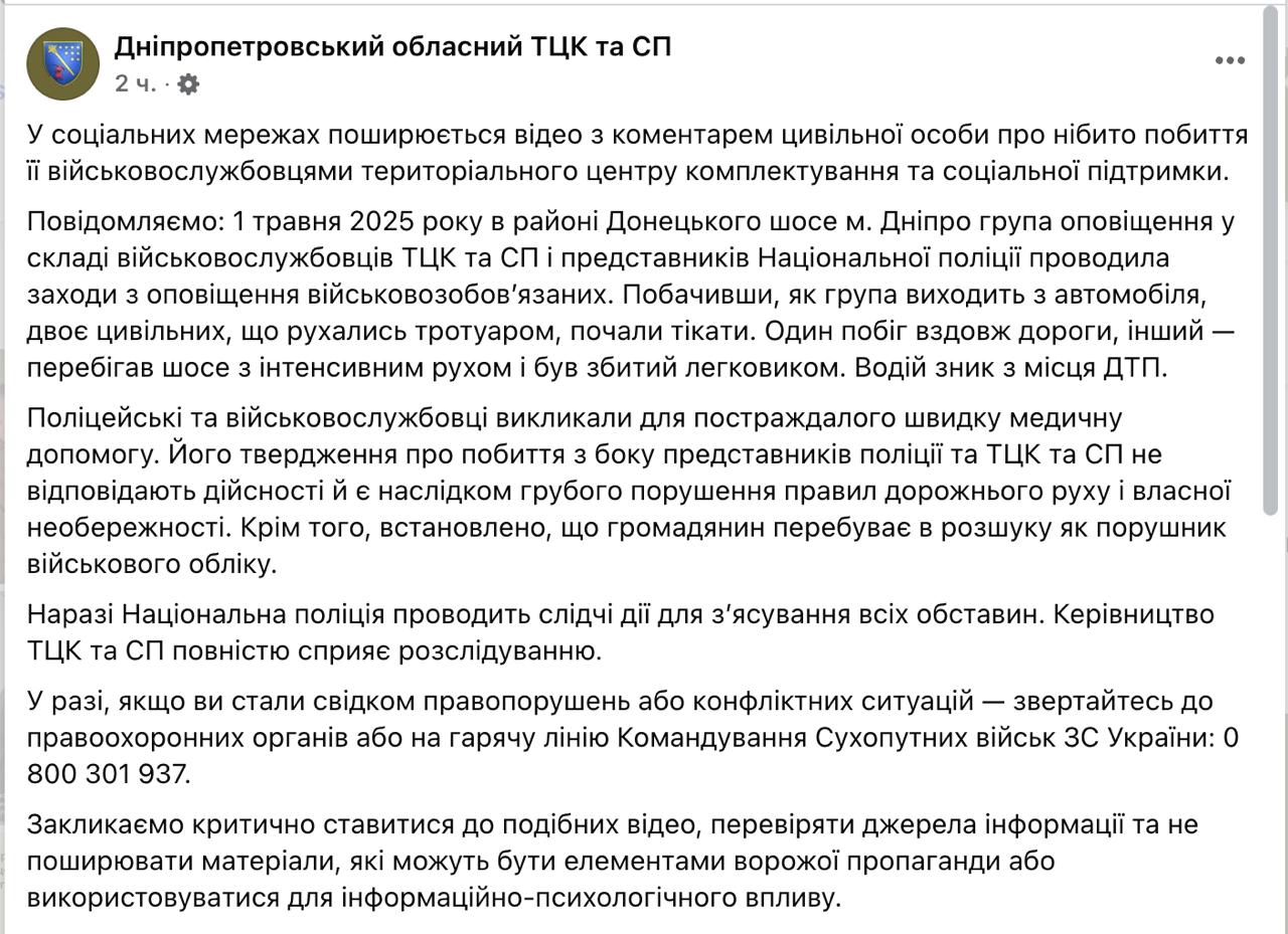 Говорят, авто покинуло место ДТП, а полиция и ТЦК вызвали пострадавшему скорую.