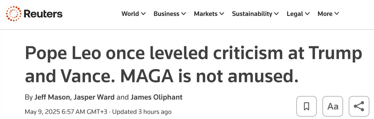 Новоизбранный американский папа ранее критиковал Трампа и Вэнса - Reuters