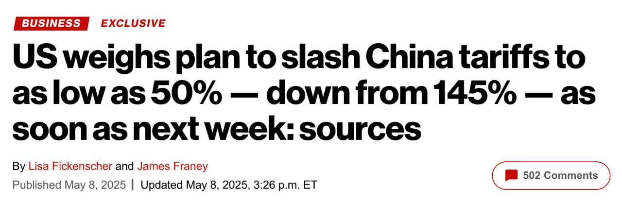 Президент США Дональд Трамп может снизить пошлины на китайские товары с 145% до 50% уже на следующей неделе.