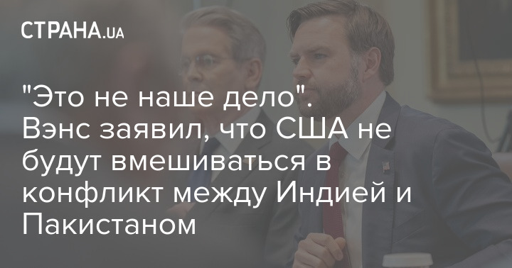 Вице-президент США Джей Ди Вэнс заявил, что Соединенные Штаты не будут вмешиваться в конфликт между Индией и Пакистаном.