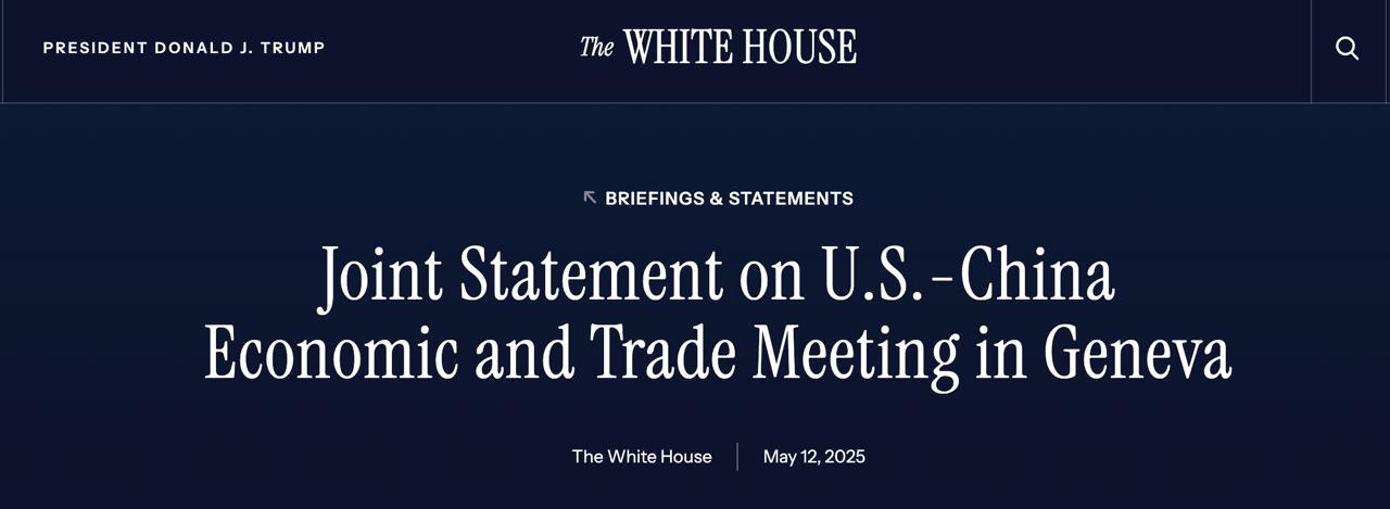 Напомним, на днях Китай и США провели торговые переговоры в Женеве, которые позитивно оценили обе стороны.