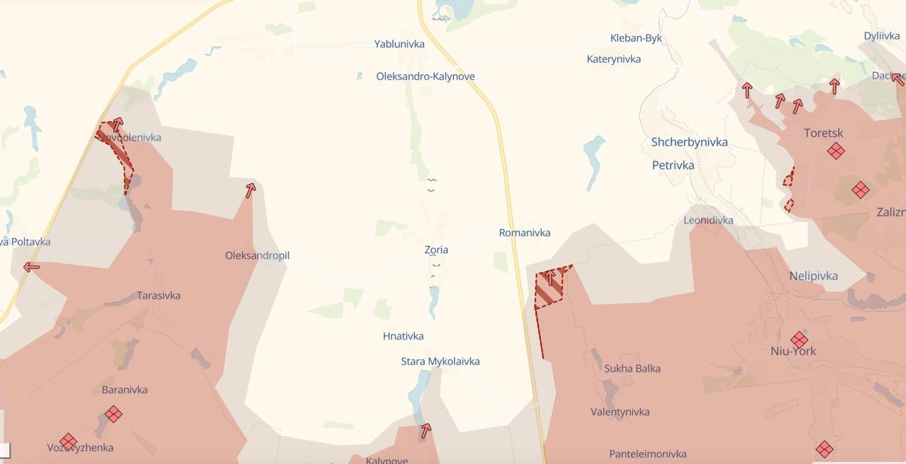 Также они продвинулись к западу от Торецка, сообщает военный паблик Deep State.