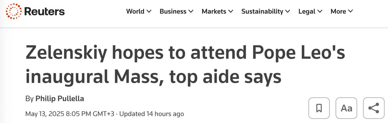 Владимир Зеленский планирует посетить инаугурационную мессу новоизбранного папы римского Льва XIV в Ватикане в воскресенье, 18 мая, и пообщаться в кулуарах с мировыми лидерами.