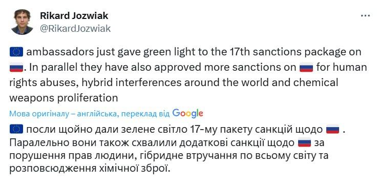 Ранее в ЕС угрожали России санкциями за отказ от перемирия. При этом СМИ писали, что в новые санкции просто добавят больше нефтяных танкеров, и 17-й пакет рестрикций "не будет выходить за рамки" предыдущего.