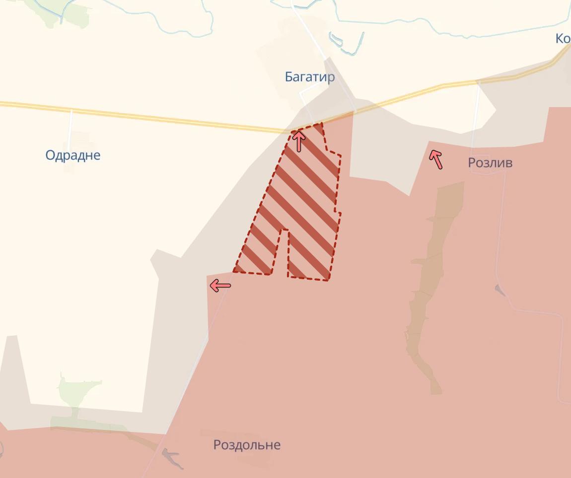 17:02 Российские войска продвинулись к югу от Богатыря в Донецкой области.