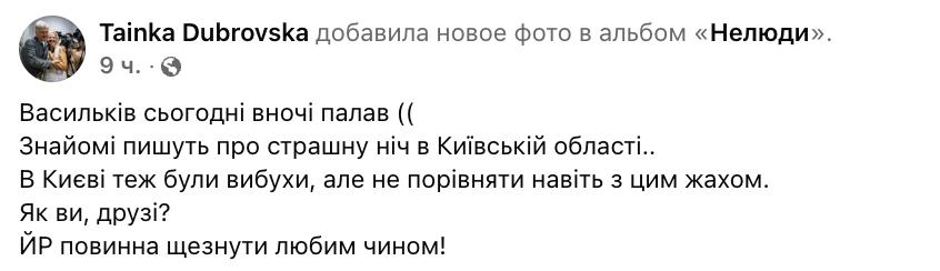 Волонтёр Елена Рябая из Василькова назвала эту воздушную атаку РФ "ночью страха и криков перепуганных детей".