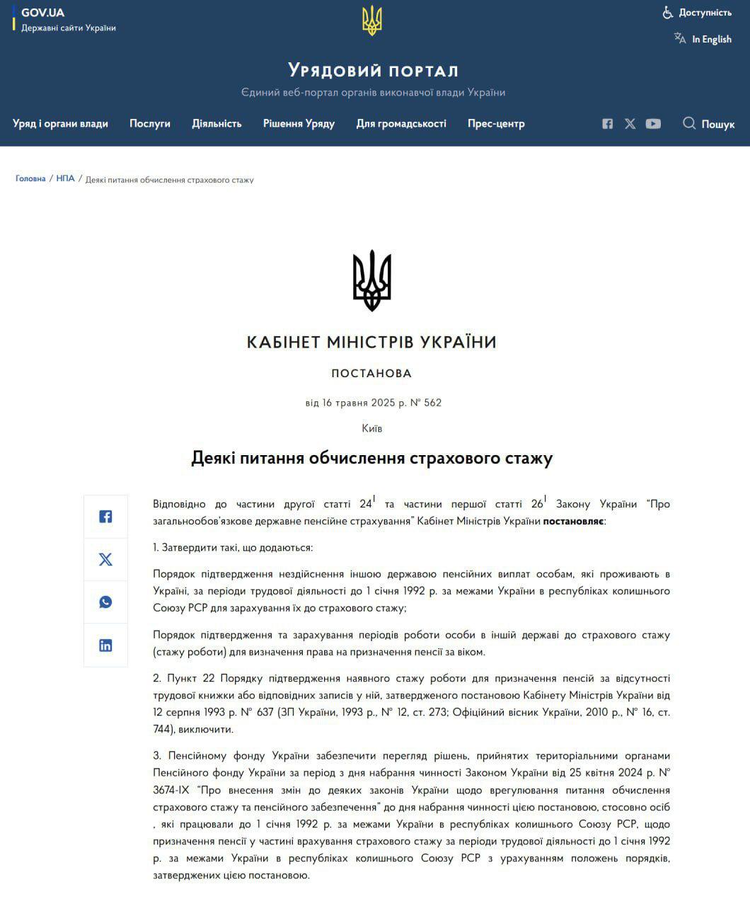 Также постановление утверждает порядок подтверждения невыплат пенсий другим государством проживающим в Украине гражданам за периоды трудовой деятельности до 1 января 1992 года за пределами Украины в республиках бывшего СССР для отнесения их в страховой стаж.