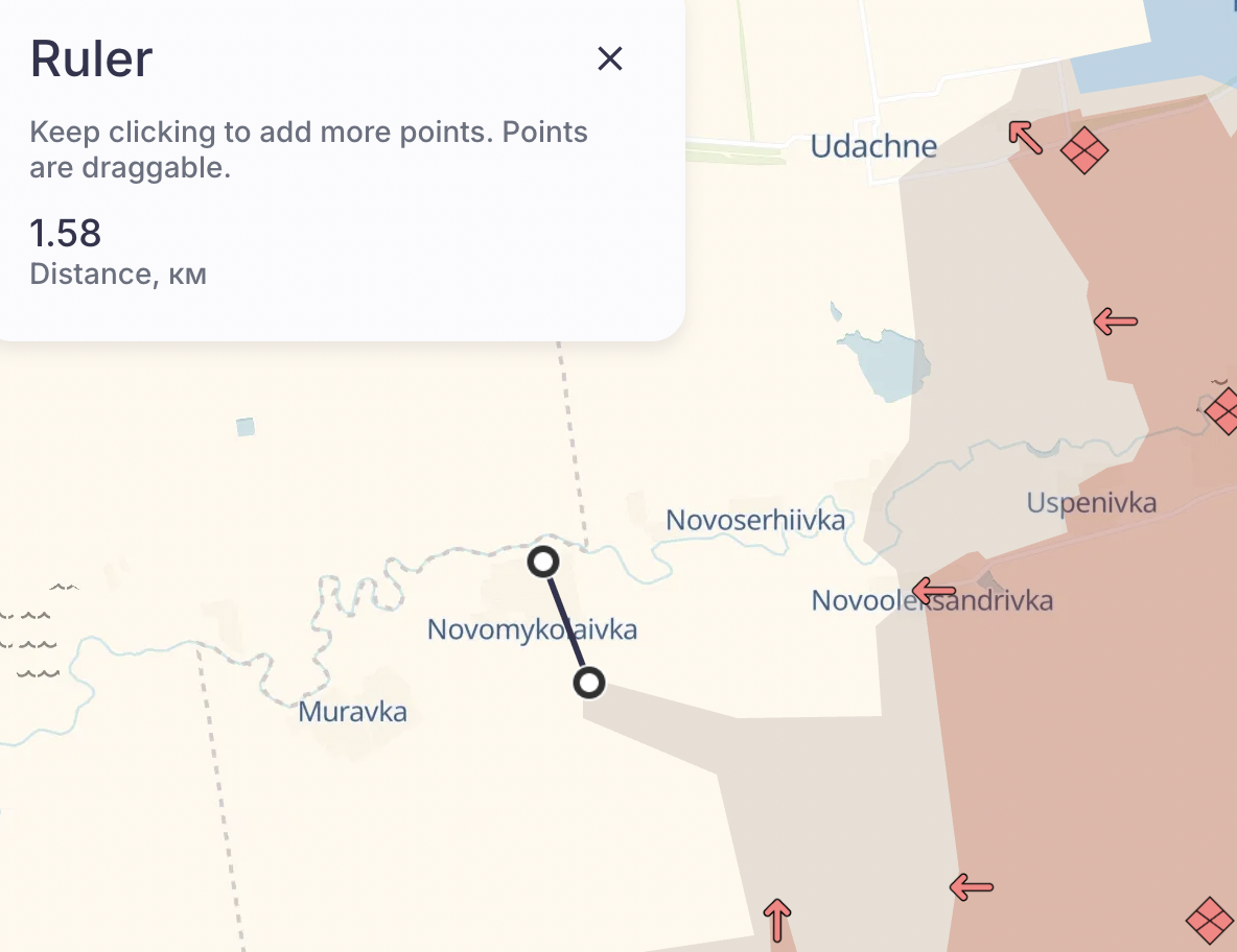 От Новосергеевки "противник практически подошел к Новониколаевке, после которой буквально 100 метров и граница области, а так пока остается 1,7 км. Введены дополнительные ресурсы с нашей стороны, чтобы стабилизировать здесь фронт", пишет украинский боец с позывным "Мучной".