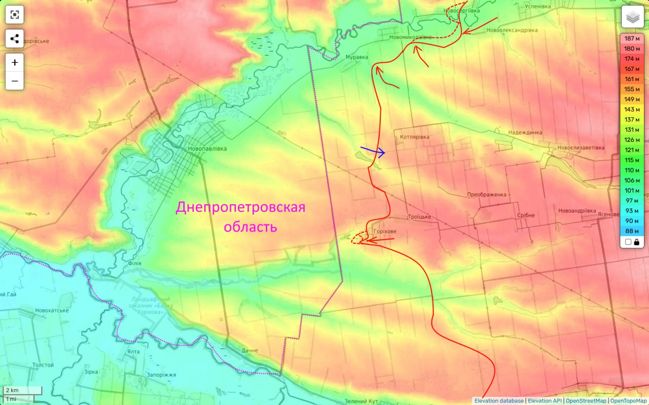 Российские паблики заявляют также о почти полном захвате Орехово южнее Котляровки, где северо-западную часть удерживают ВСУ. Украина этого не подтверждает. По данным "Мучного", в селе идут ожесточенные бои. Орехово находится практически у границ Днепропетровщины.