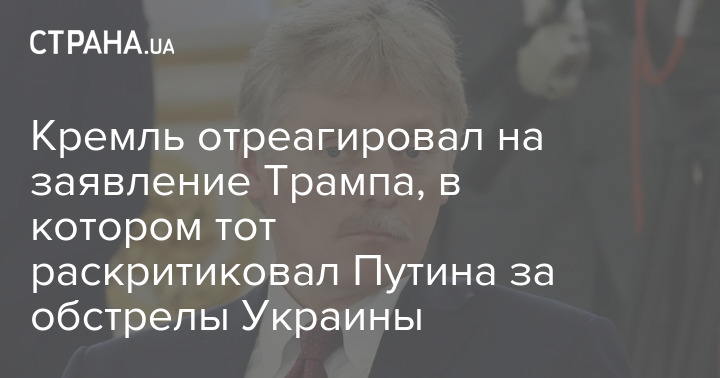 Кремль прокомментировал заявление президента США Дональда Трампа, в котором тот раскритиковал Владимира Путина за обстрелы Украины.