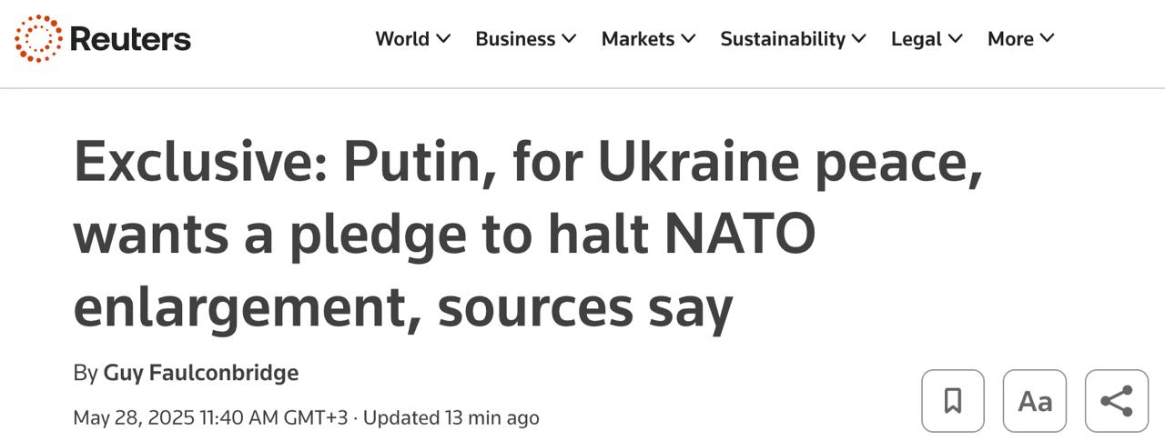 НАТО, санкции, русский язык. Источники Reuters в Кремле называют его условия для завершения войны